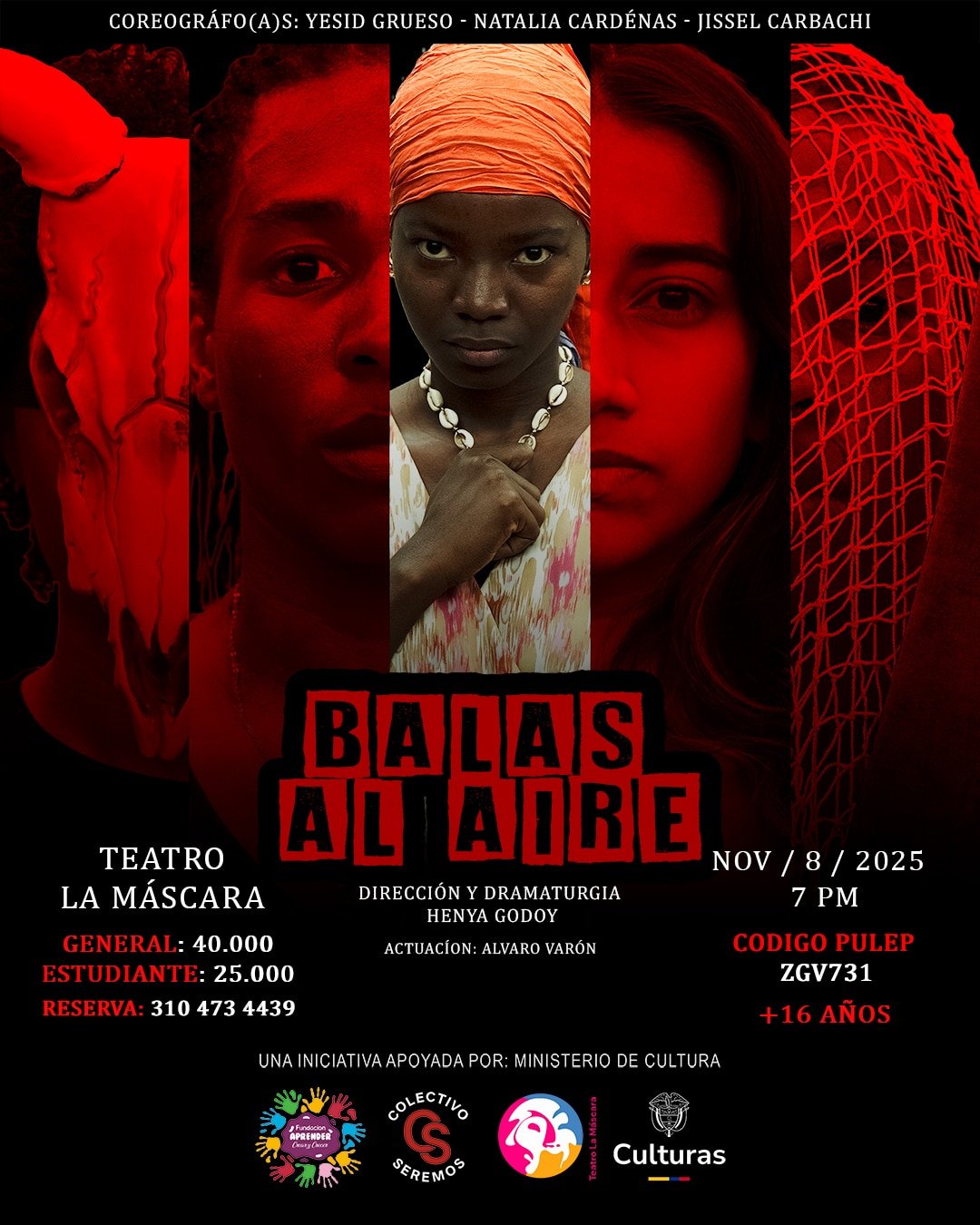El cuerpo de las intérpretes se convierte en archivo vivo, revelando historias de mujeres que enfrentan el desarraigo, el duelo y la necesidad de persistir y resistir. Balas al Aire propone una reflexión estética y sensible sobre cómo las artes escénicas pueden transformar el dolor en acción poética y colectiva, reivindicando la dignidad de quienes resisten desde la memoria y el movimiento.