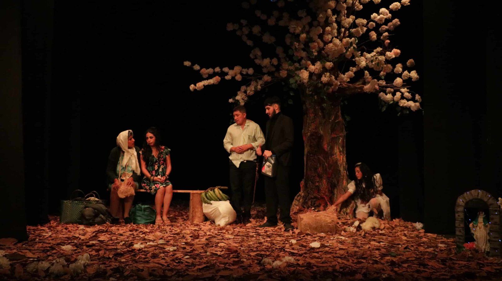 Cuatro personajes llegan a un paradero de chivas con dirección a Popayán, donde se encuentra una niña jugando. Jesús, un joven de ciudad llega al paradero preguntando por una gasolinera, ya que se ha quedado varado en la vía a Rosas Cauca, e igualmente se queda esperando la chiva para llegar al otro pueblo y encontrar una estación de gasolina. Todos los personajes empiezan a contar sus historias y los hechos por los que decidieron irse de Timbío Cauca, entre ellas se encuentra el desplazamiento forzado, violencia sexual y violencia psicológica, así como también está Jesús que siempre ha sido un joven acomodado y de buena familia. En lo que transcurre la historia, el personaje de Jesús se da cuenta que algo no está bien en él, y Xiomara, la niña del árbol i sabe la verdad, y al contarles todo, cambiará el rumbo de los personajes.